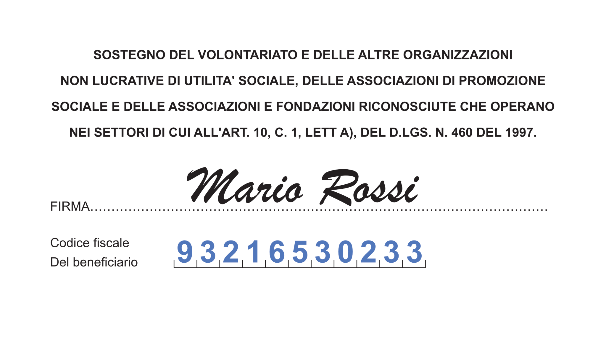 Con la tua firma e il nostro Codice Fiscale 93216530233